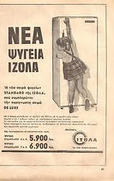 Η Ιζόλα προωθούσε δύο τύπους ψυγείων, οκτώ τύπους κουζινών, τρία μεγέθη θερμοσιφώνων, καθώς και θερμάστρες, καλοριφέρ, λουτρά, νιπτήρες κ.ά. Οι κατασκευές αυτές ήταν κυρίως από σίδηρο ή εμαγιέ.